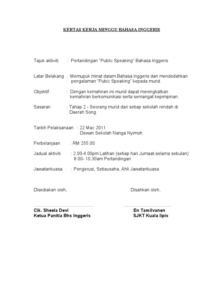 Kertas Kerja Program Minggu Bahasa Inggeris Pdf